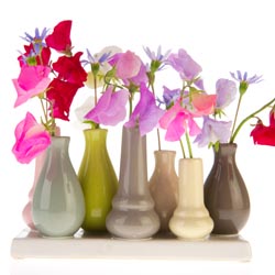 Lathyrus in little vases ← Previous Next → Colorful Sweet peas in little vases isolated over white background